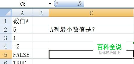 由此可见,对于MIN函数来说,不仅数值可以参与运算,逻辑值FALSE,TRUE也可以参与运算,FALSE 代表0,TRUE 代表1 ,所以这里返回的最小值为-2,而不是0