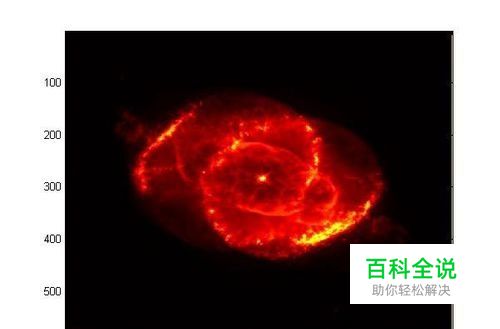 第三,接着输入如下代码: figure('Position',[50,50,600,500],'Name','Intensity heat') im=mean(rgb,3); image(im) colormap(hot(256)) 该代码通过mean( )改变猫眼星云照片的数据值和colormap( )改变图片着色。