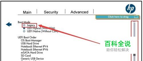惠普商用本UEFI BIOS,更改Boot Mode到Legacy
