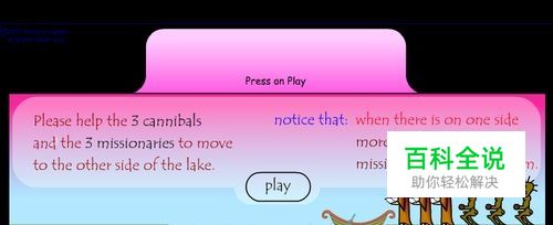 点击play开始游戏,先分类,站前面3个的是“人”,后面3个是“鬼”,左边是B岸,右边是A岸,点击人或者鬼进行移动,点GO划船。