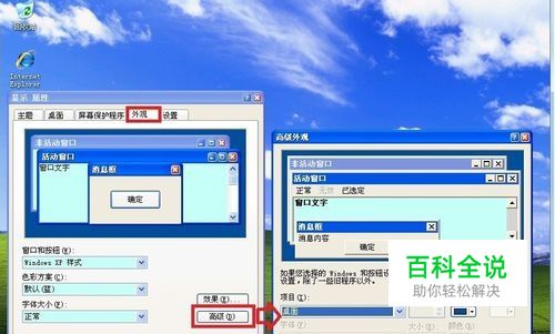 用惯了Windows XP 操作系统的人,都熟悉如何调用该功能的步骤: 开始→控制面板→显示→外观→高级→即可打开高级外观,进行设置。