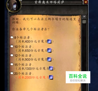 选择上交远古魔力数目。 亡灵之触:已有玩家通过任务枯法者训练最后奖励的箱子获得该隐藏外观 见帖子[死亡騎士鮮血神器隱藏外觀-不死之觸]