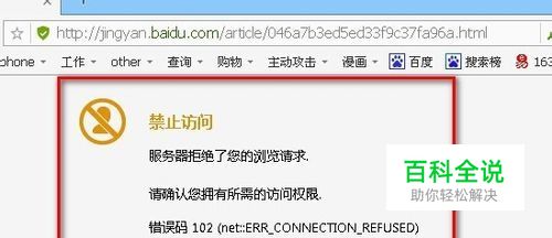 在访问互联网时,有时候会访问其它网站都正常,只有某个网站(比如百度经验网站)无法打开的情况,输入正确的网站后,浏览器会提示禁止访问的错误。