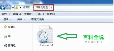 5. 用资源管理器打开U盘内容。 具体操作方法:按下键盘组合键“Win+ E”打开资源管理器,然后选择U盘盘符并打开,即可防止U盘中的Autorun.inf文件的运行,从而有效防止病毒文件的运行。