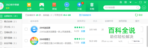 首先,如果你还没有 卸载2345系列的软件,那就直接打开 360软件管家,用 一键卸载,这样会删除的比较干净, 不会有残留。