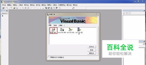 首先,打开VB6集成开发工具,VB6会弹出一个新建工程窗口,这里我们选择 标准EXE,然后点击打开。要注意的是,你的可能和我的不一样,你的也许会多出很多项,这个没关系,因为我使用的是精简版的VB6.0。 我们也可以通过文件菜单,新建工程来建立工程,结果是一样的。