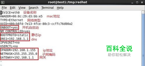 在终端中输入:vi /etc/sysconfig/network-scripts/ifcfg-eth0