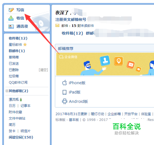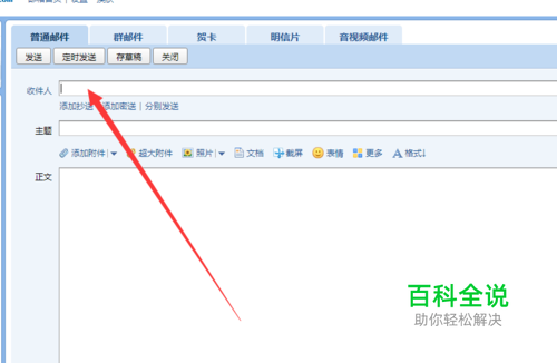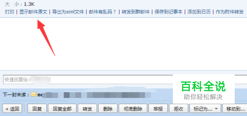 发送完之后进入到收件箱打开自己发过来的邮件,在邮件中间右边的位置,有一个拉开的小图标,点击打开。