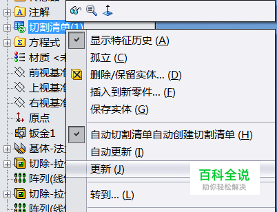 此例需要用到切割清单。 在切割清单上面右击一次,点击更新。