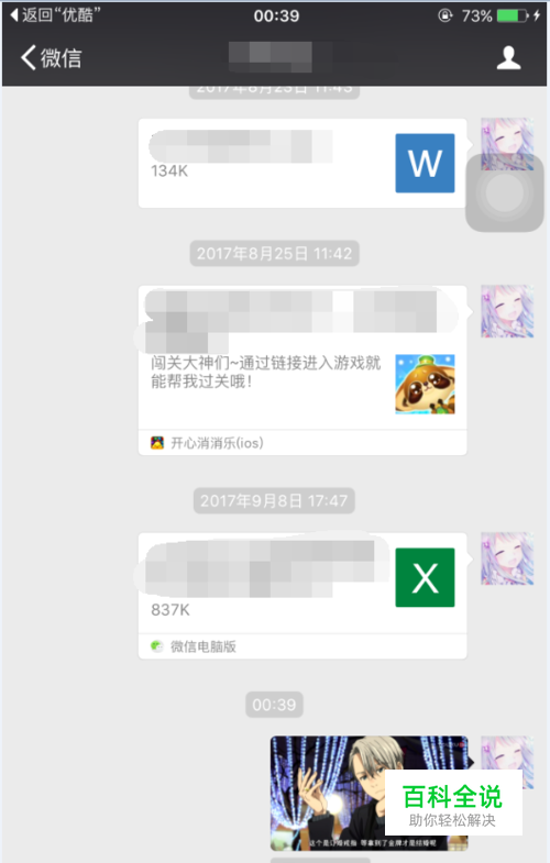 选择分享到微信,这样比较方便下载。 选择一个聊天,选择好之后,点击【发送】,即可完成。