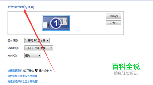 此时会弹出更改显示器的对话框,同样,在控制面板中也可以打开。