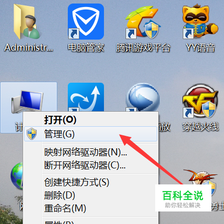 第一步:在桌面上找到计算机并鼠标右键它找到管理选项单击打开。如下图红色箭头标注所示。
