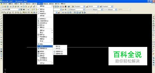 画好直线后,点击工具栏中的绘图,然后在其中的下拉菜单中找到点这个选项,其中你就看到了有两种等分的方法。