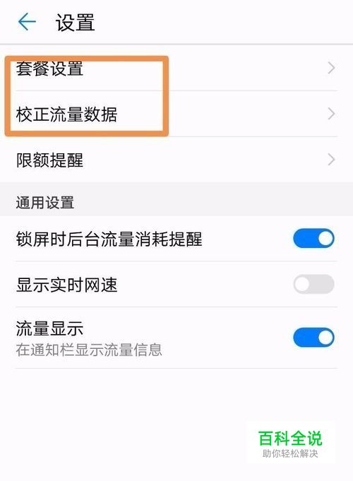 这时看到“套餐设置”和“校正流量数据”,这两个是都需要手动更新的。