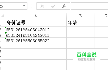 在要计算年龄的单元格内输入=2018-MID(A2,7,4)其中B2为身份证号的单元格,输入计算公式后,按回车键,即可计算出年龄. (函数中的2018指今年)