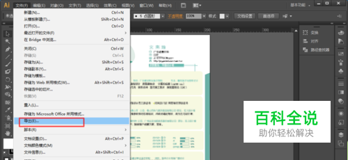 在文件的左上方中找到“文件”里面的“导出”。(AI格式的图片转化成其他其他格式的跟其他软件的略有不同)