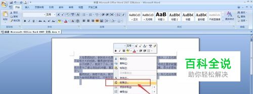 Ctrl+A将文字全部选中后,右键选择“段落”
