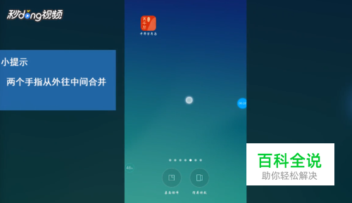 在桌面上位置比较大的页面,两个手指从外向中间合并。