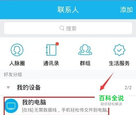 在新版的QQ中,联系人下面我的设备下面就会有一【个我的电脑】。点击进入。