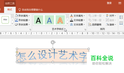 总之,输入文字后,好好使用【格式】菜单下的功能选项,就可以设计出漂亮的艺术字。