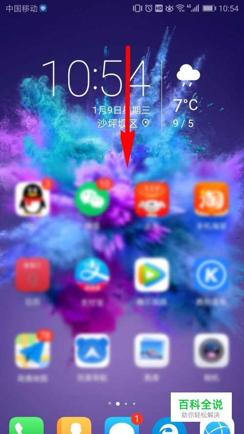 先打开已经与你的耳机配对过的手机,在手机主页上向下滑动屏幕。