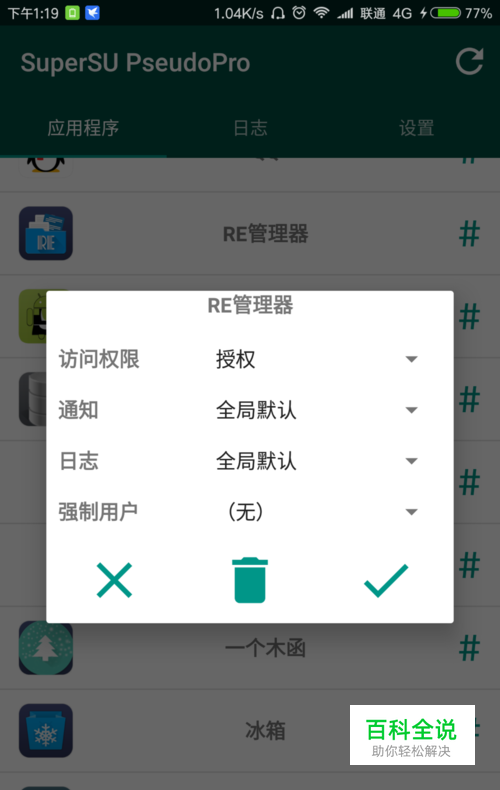 然后下载安装RE文件管理器,给RE管理器权限。(如果没有申请权限就先打开RE管理器,然后su会跳出权限请求)