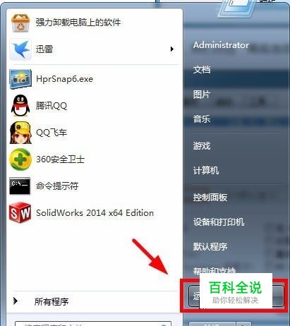 在开始菜单中,打开运行,如图