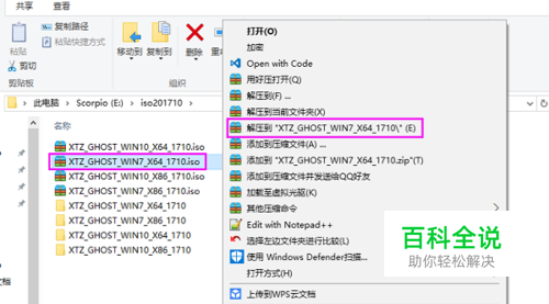 下载win7 系统iso包到C盘之外的分区,右键解压出来(有些用户反映无法解压,那是因为没有安装解压软件,遇到此类情况,只要到网上下载解压软件即可解决):