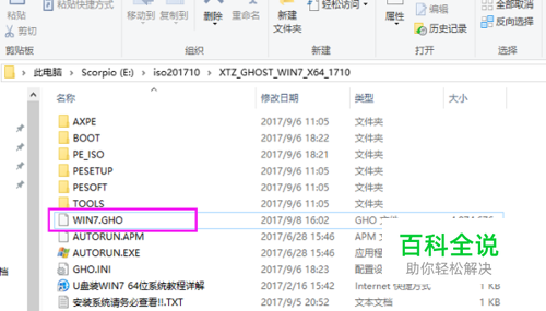 打开解压后的文件夹,找到win7.GHO文件,然后将其复制到已经制作好的U盘启动盘中。