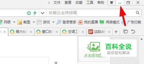 窗口最小化,如图所示用鼠标左键点击最小化按钮, 此时的浏览器窗口就会回到任务栏里,完成最小化的操作。