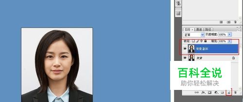 打开PS,点击“文件”--“打开”,打开你要更改背景的图片。图片在PS里面打开后,在右侧图层管理器里面,把图层拖到下面右数第二个按钮“创建新图层”,成功复制出副本图层。形成保持原文件的习惯。