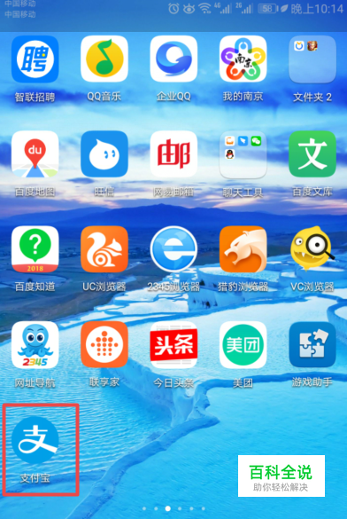 首先,我们打开我们的手机,然后我们点击手机桌面上的支付宝;