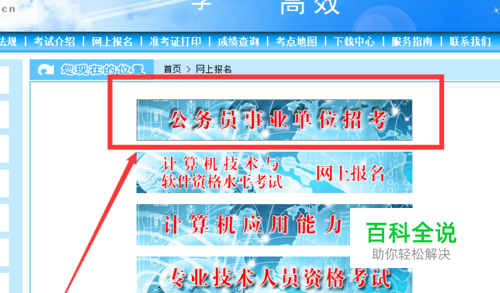 打开公务员报名网址,在这里点击公务员事业单位报考