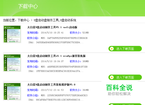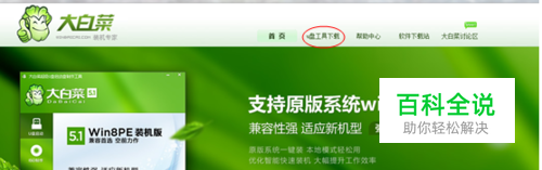 打开大白菜官网,进入”U盘工具下载“,选择合适的大白菜U盘启动制作工具进行下载。