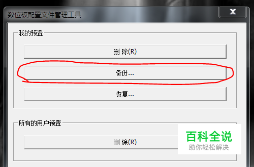 卸载前,先导出自定义快捷键的配置文件 在开始菜单中打开随着驱动一起被安装的"Wacom 数位板配置文件管理工具",点击备份,将配置文件保存起来。 (配置文件,不同驱动版本之间不兼容)