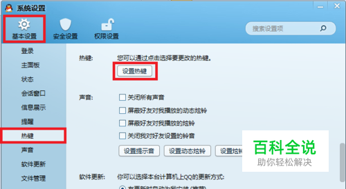 基本设置--热键 在热键里面可以设置qq截图快捷键。