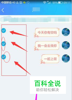 选择‘多选’后,在对话框里选择我们要想发送的每条信息,然后进行勾选。