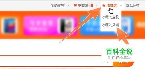 第三种情况是在浏览器上已打开淘宝,并登录成功了,那么在网页的上方的购物车后面就会有一个收藏夹,点击它,就会弹出收藏的宝贝和收藏的店铺,按需点击就行。