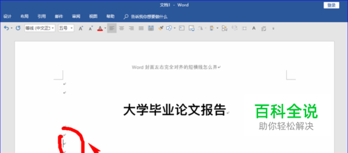 打开我们的word文档,然后在文档的封面页找到一个合适的位置,接下来就可以开始设置封面上的短横线了。