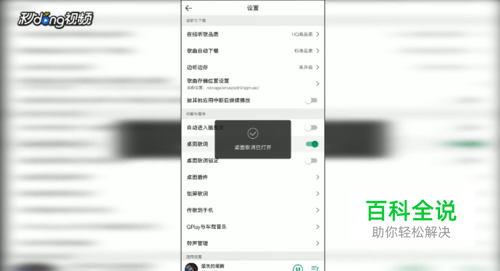 点击左下角的设置,将桌面歌词及桌面歌词锁定的开关打开。