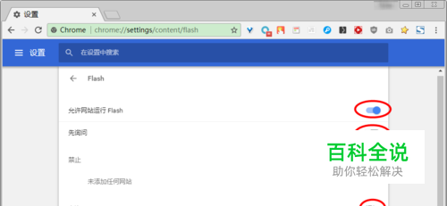 开启 Adobe Flash Player 在Chrome地址栏中输入: chrome://settings/content/flash,进入Flash设置,勾选允许网站运行flash。也可以选择“ 在允许网站运行 Flash 前先询问"选项,以便可以对flash的播放做一些控制。可以直接将信任的网站加到允许的网站列表中,或以后通过界面控制再加也可以。