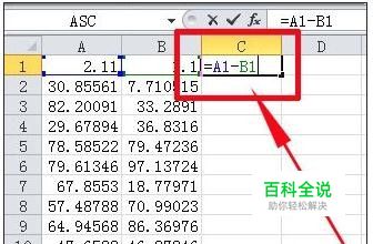 先在"C1"单元格里输入公式"=A1-B1",如图所示
