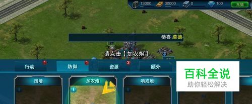 建造加农炮,增强基地防御,点击建造按钮,再点击完成建造,如图所示