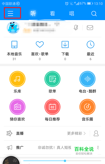第一步在我们的手机里面打开音乐应用,进去听歌的界面,点击右上方的列表图标,如下图所示: