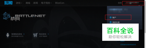 第四步,现在我们就进入了暴雪的主页,如图所示,然后右上角的账户,如图所示。