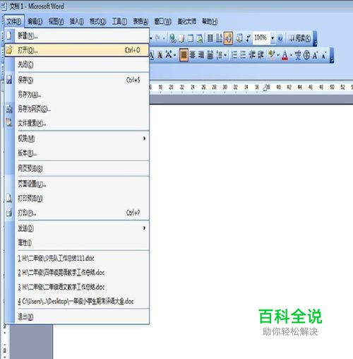 打开office word 2003 ,执行“文件”-“打开”命令打开一张图片。