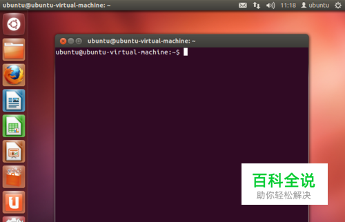 首先在桌面上任意一处按一下键盘上的, CTRL+ALT+T调出终端。