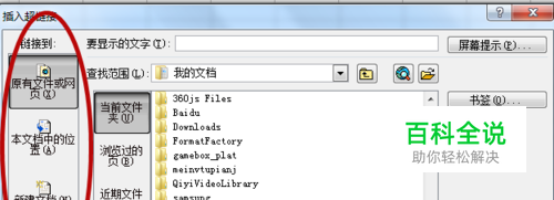 左边红圈标记的区域是超链接插入位置的选项
