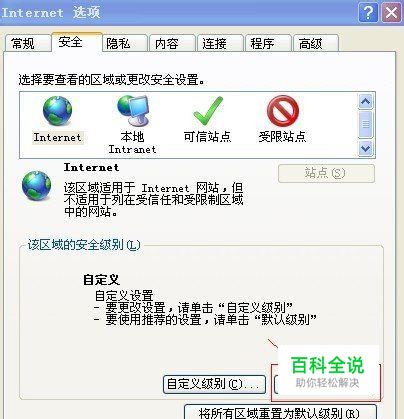 之后单击“安全”选项卡, 选择“默认级别”,点击底部的“确认”,如下图所示。