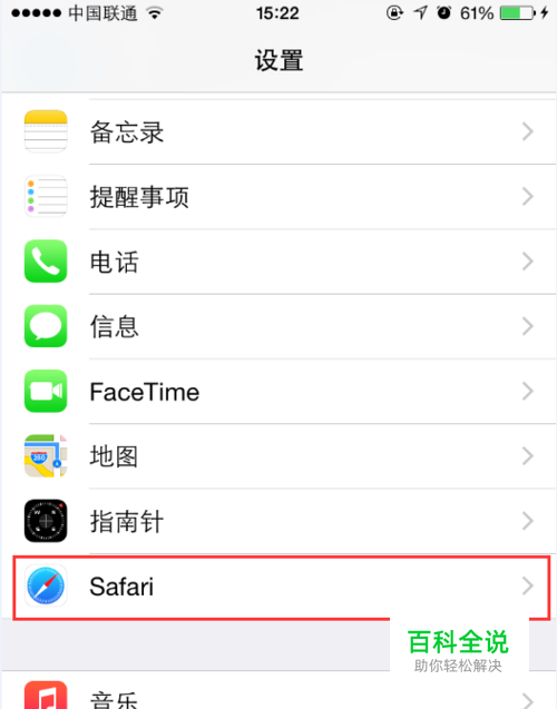在设置中找到Safari选项点击打开